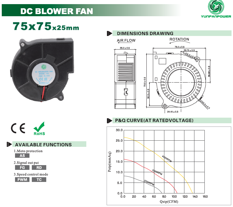 Model Number DC Blower 7525