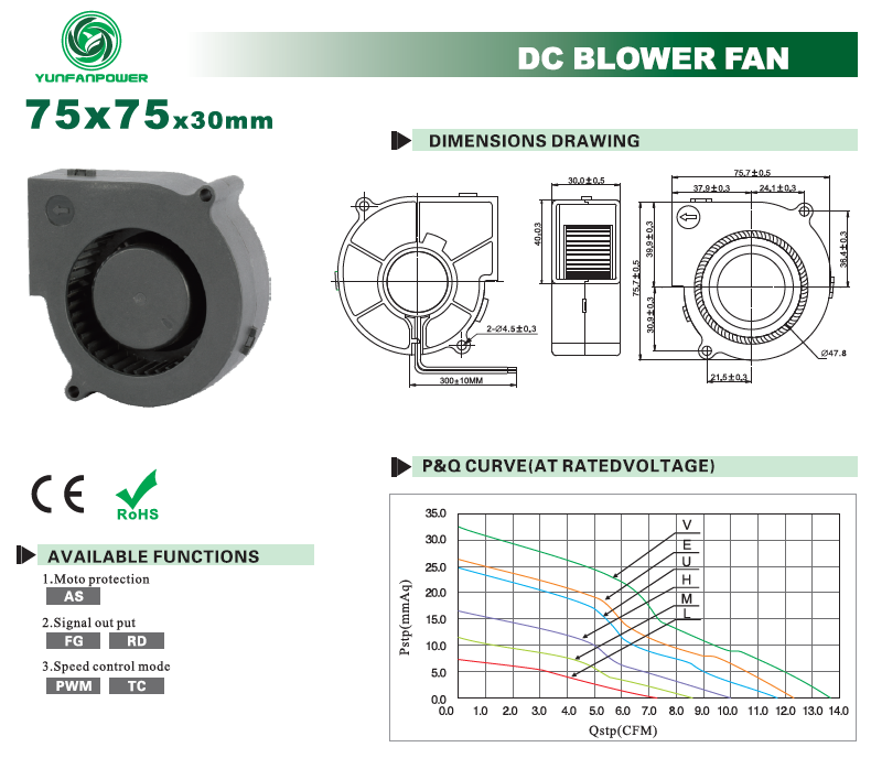 Blower fan 7530,fan size 75x30mm